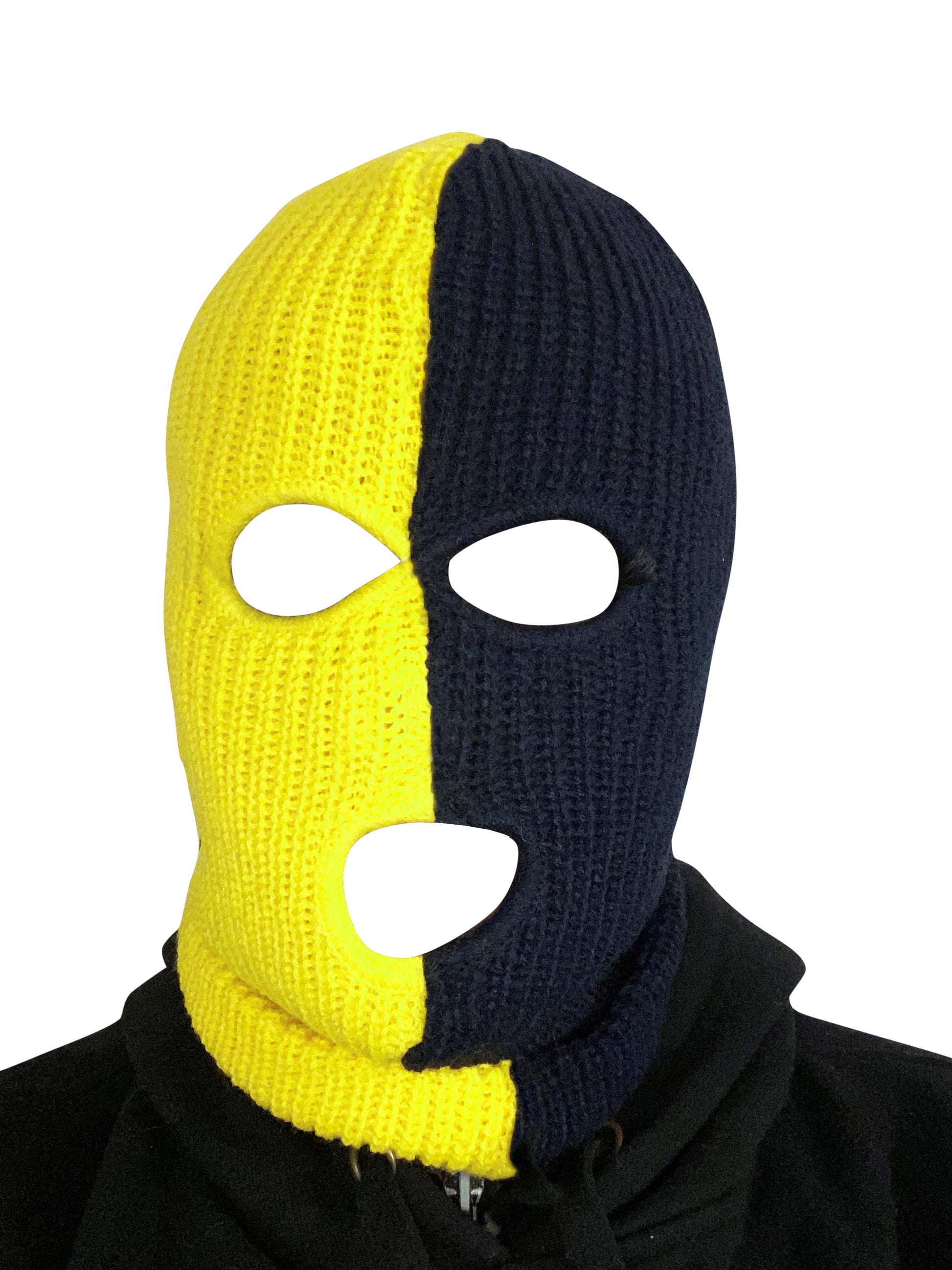 Ski Mask Black and Yellow 3 holes Half Black Half Yellow
